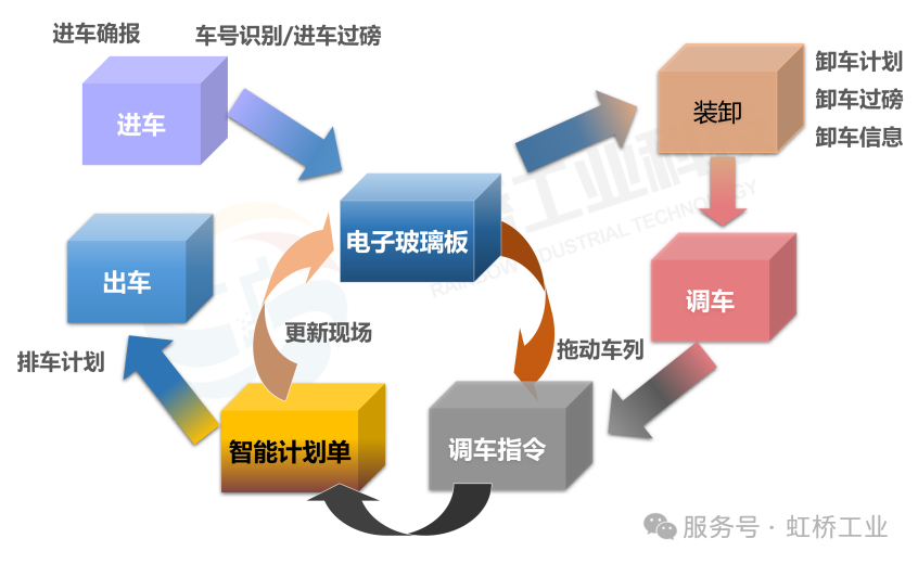 ①现场车号信息平面图 ②车号识别 ③日装车计划 ④排空计划 ⑤要车计划 ⑥列车编组 ⑦发车确报
