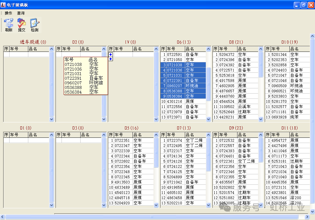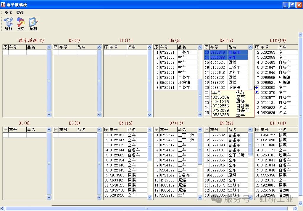 - 实现了车号的自动调整,解决了人工手写玻璃板,避免了人工填写车号出错及漏填现象;