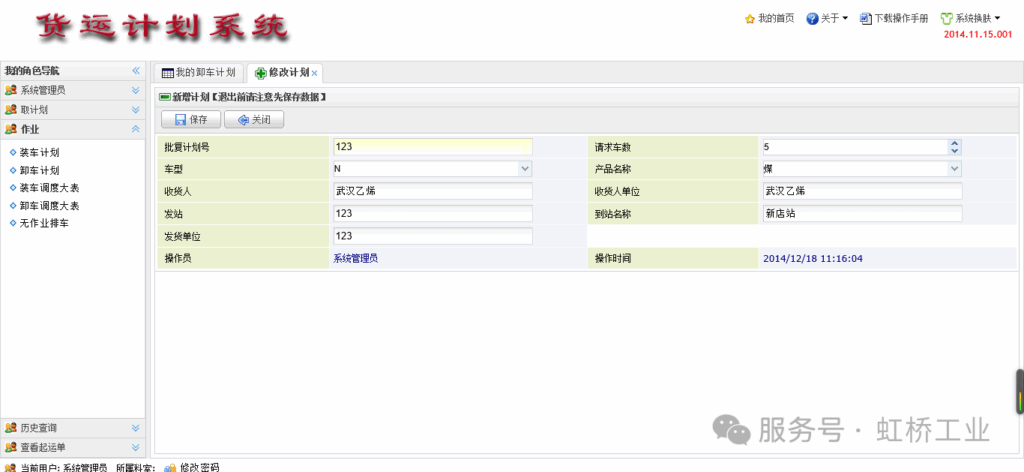 货运管理系统主要是针对专用铁路货运管理设计,从请求车计划、审批计划、装车作业完成形成一个整体的物流系统。它以Internet发布信息为基础,让企业信息资源在网络上共享,从而提高企业的效率。与一般的网站相比较,它安全性高、操作简单、维护方便、实用性强。货运管理系统以更快的运行速度、更为灵活、方便的操作、更友好的界面,为您提供一个更为便捷、自由的网络操作平台。根据各岗位的职权划分角色,依据角色赋予不同的处理权限。