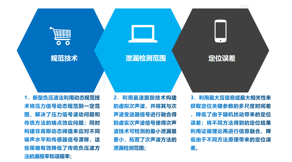 基于新型负压波、次声波和质量平衡法等综合泄漏监测技术开发及在输油管线的应用,主要应用了以下新的技术: