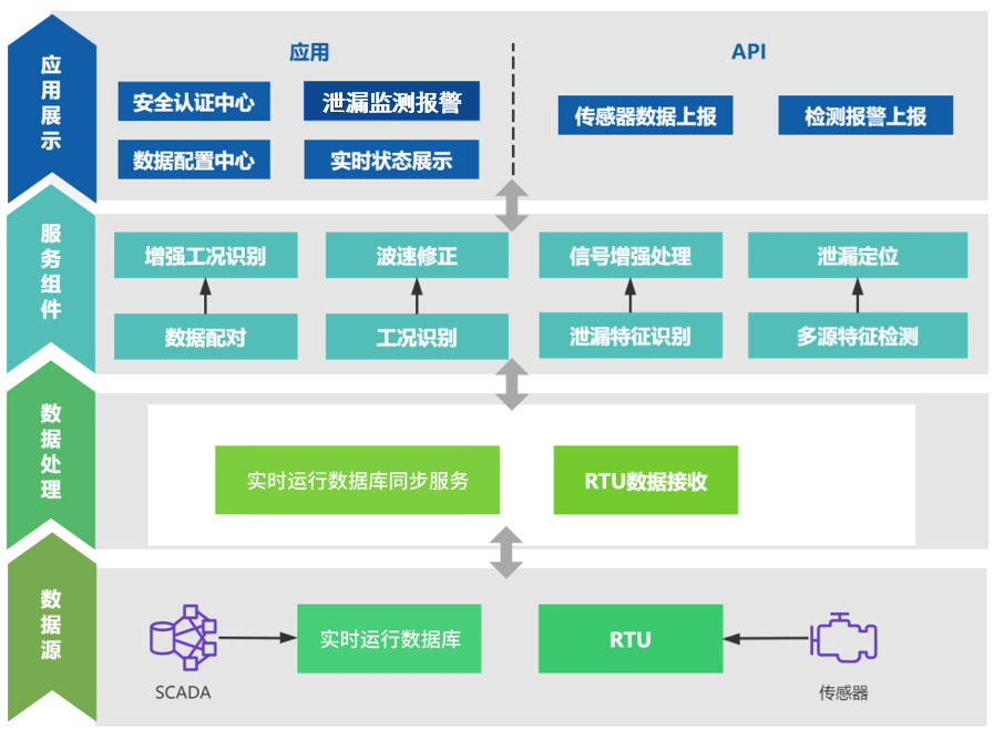 数据采集功能的技术路线将整合两类数据来源:一是通过部署在管道关键节点的动态压力传感器和振动传感器等仪表,实时捕捉现场数据并确保高时间分辨率以便于泄漏即时检测;二是同步从SCADA系统实时数据库获取综合生产数据。