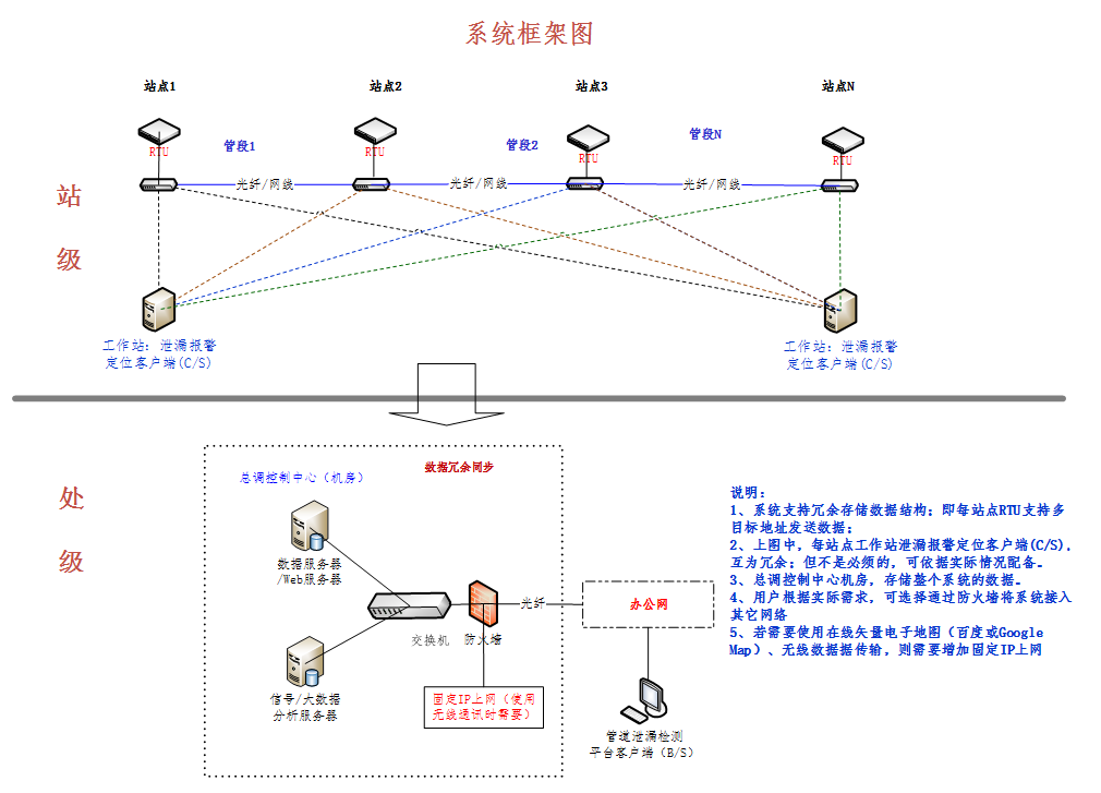 根据管道现有的状态与泄漏检测技术的特点以及项目的技术指标,构建了基于管外间接检测技术的5层框架的新一代泄漏综合监测平台。