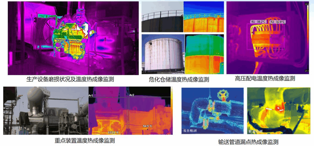 应用热成像摄像机及AI智能算法实时监测重点装置或设备内部温度、磨损程度和是否存在肉漏等问题,避免设备异常导致的重大危险事故发生。