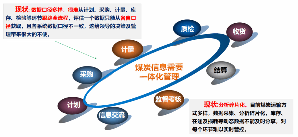 在生产企业信息化、数字化、智能化趋势背景下,企业对各运行模块之间信息和数据集成、智能分析要求越来越高。煤炭使用企业对从采购控制、计量统计、质量分析、过程损耗、使用效率等各环节都有效率、效益的管控要求,煤炭系统管理e化已成为重要课题。