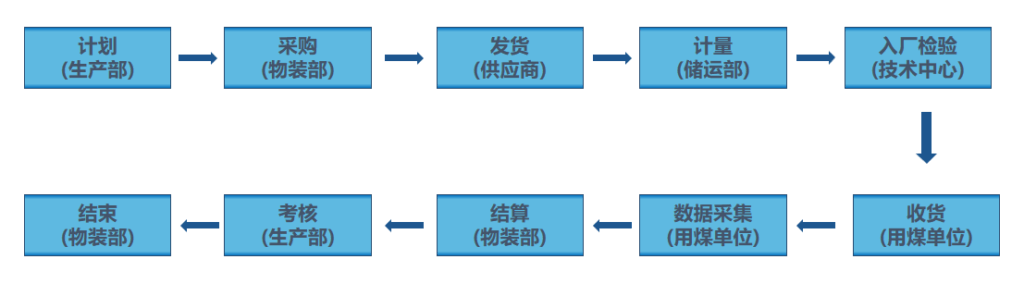 - 采购管理:根据计划量将采购可选点、可选供应量提供给作业单元;作业单元根据计划量,按不同煤种选择采购比例,生产部门组织召开煤炭专题会议确定采购计划。