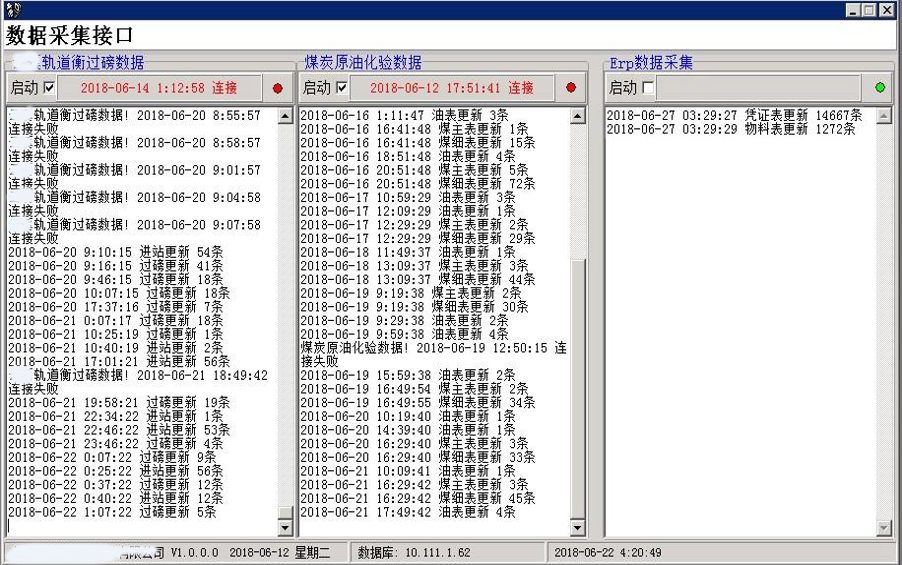 采集:连接火车轨道衡数据采集、船运皮带秤数据采集、原料煤皮带、入炉煤皮带计量采集。