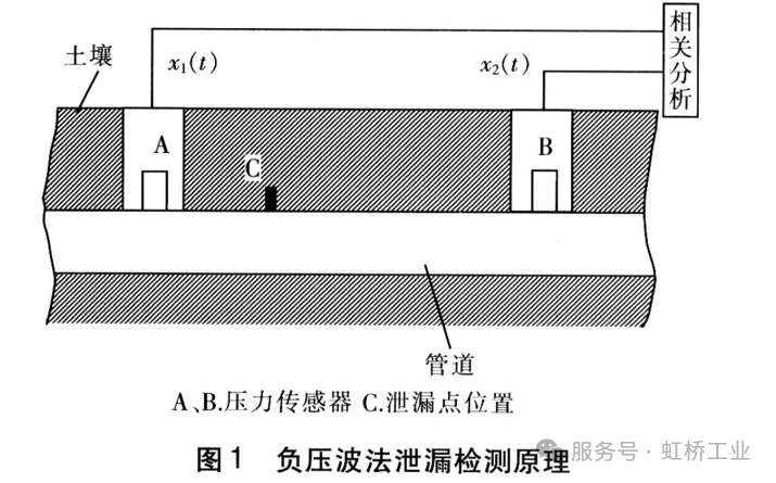 在管道两端安装的压力传感器可以捕捉到包含泄漏信息的负压波,由负压波的传播速度和管道首末两端压力传感器捕捉到负压波的时间差可以计算出泄漏位置。