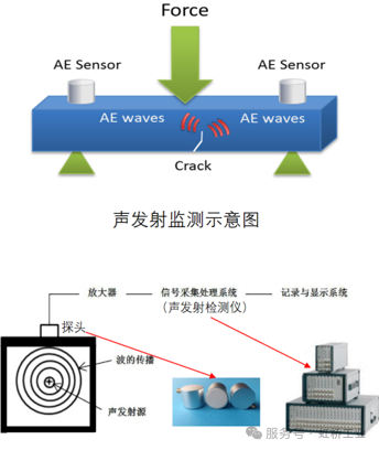 材料在受到外部载荷或者内力的作用出现变形或裂纹扩展,其内部储存的应变能快速释放产生弹性波的现象,称为声发射(Acoustic Emission,简称AE),有时也称为应力波发射。