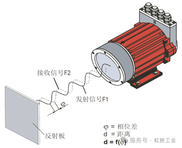 激光发射器发出激光脉冲波时,记录此时激光波的相位F1,当激光波碰到物体后,部分能量返回,当激光接收器收到返回激光波时,记录此时激光波的相位F2,在一定距离范围内,激光扫描器到物体的距离为“d”值,d = f (φ)。